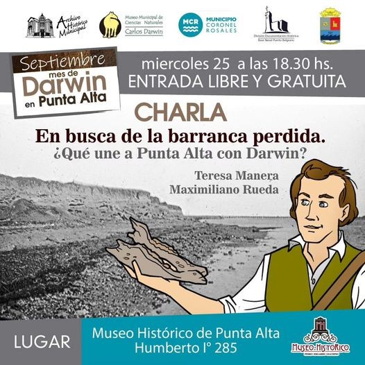 “En busca de la barranca perdida. ¿Qué une a Punta Alta con Darwin?”, es el título de la disertación en la que se abordarán los avances de las diferentes investigaciones realizadas en los últimos años en el sitio geográfico Punta Alta, en conjunto con el Municipio de Coronel Rosales y la Jefatura de la Base Naval Puerto Belgrano.