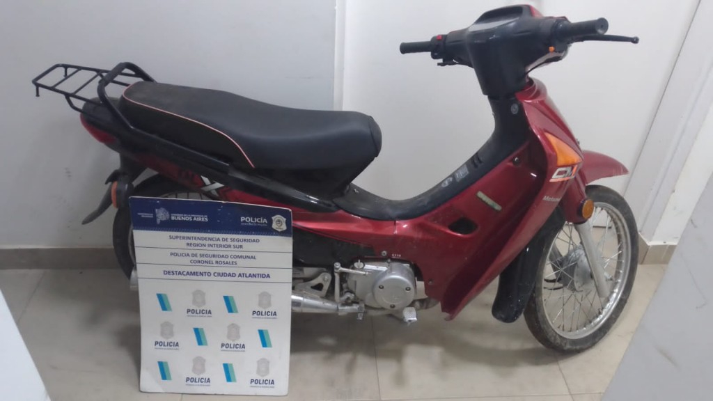 Fecha 26/09/24, 00:20hs personal de destacamento ciudad Atlántida y comisaría punta alta proceden a la aprehensión de menor (16) en calle Dufurq al 1200 (BALDIO) quien momentos antes se lo divisa descartando de un motovehiculo marca MOTOMEL modelo C100DLX color roja sin chapa patente cursado por nro. Motor y chasis posee PEDIDO DE SECUESTRO ACTIVO - Alta 22sep24 IPP 22117/24 HURTO MOTOVEHUCULO damnificado masculino (18) hecho denunciado en comisaría de Punta Alta. Interv. Ufij de menores 1 Bahía Blanca. El menor después de cumplimentar recaudos legales fue