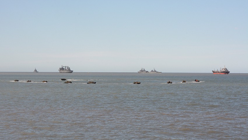 «De todas las fases de la operación anfibia, se pudieron ver desde la IV Batería Histórica los movimientos de buque a costa, donde las unidades de superficie hacen el trasbordo de personal a los vehículos anfibios y embarcaciones menores, se arriba a la playa y se sigue con las acciones en tierra. Es la fase más crítica y requiere una compleja planificación y ejecución», explicó el Contraalmirante Gómez.