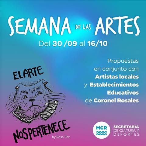 La Secretaria de Cultura y Deportes municipal invita a participar de la “Semana de las Artes” forma parte del Calendario Escolar para todos los ámbitos educativos, con el objetivo de promover la realización de prácticas artísticas como muestras, exposiciones, conciertos e intervenciones.