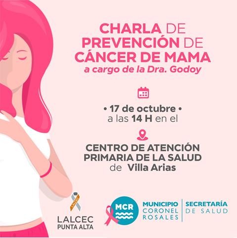 Este jueves 17 de octubre, a las 14:00 hs, se llevará a cabo una importante Charla de Prevención de Cáncer de Mama en el Centro de Atención Primaria de la Salud (CAPS) de Villa Arias.