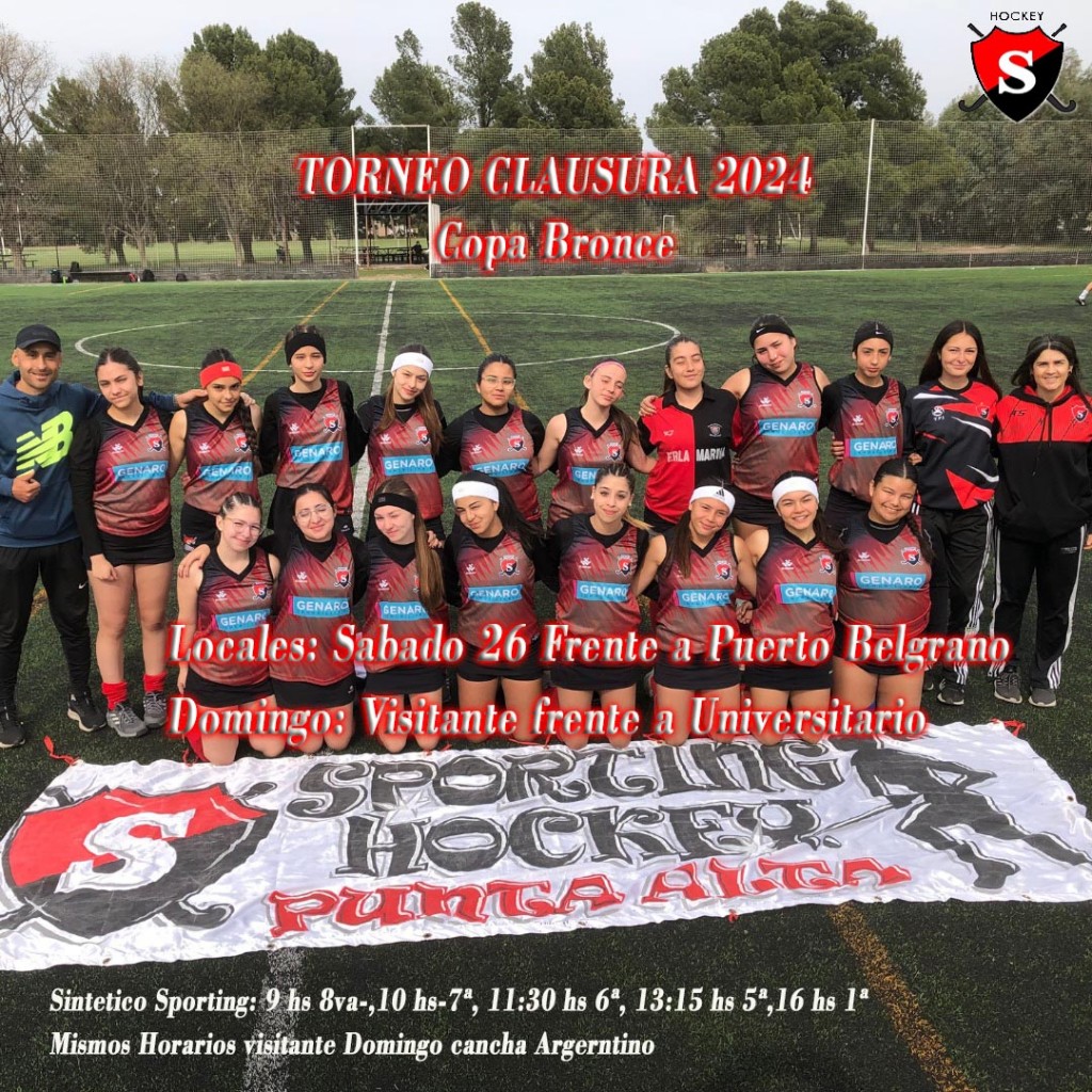 Este fin de semana, doble jornada, Torneo Clausura, Copa de Broce organizado por la Asociacion Bahiense de Hockey, el Hockey del Club Sporting jugara este Sabado 26, somos LOCALES contra PUERTO BELGRANO .