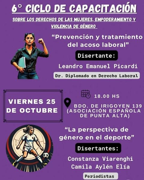 Se invita a la comunidad a participar del primer encuentro denominado «Prevención y Tratamiento del acoso laboral» ; y «Perspectiva de genero en el deporte», en donde disertarán el Dr. Leandro Emanuel Picardi, y las periodistas Constanza Viarenghi y Camila Aylen Elia.