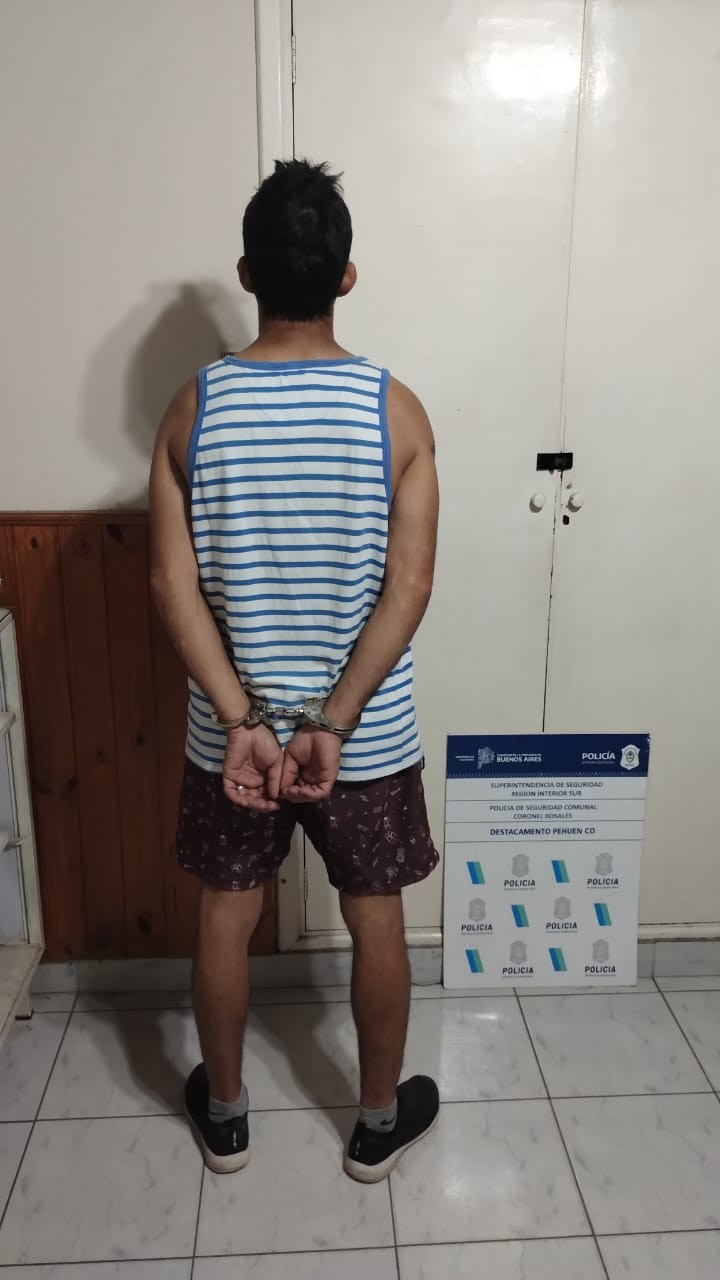 Fecha 08/11/2024, 18:30 hs personal del destacamento pehuen con procede en domicilio de calle 18 casa nro. 362 a la aprehensión de masculino (37) quien habría agredido físicamente a su pareja femenina (34) la cual solicito auxilio vía telefónica al destacamento. Vícitma presenta lesiones visibles en miembros superiores y dolor en abdomen, trasladada a Htal Eva Perón fines examen médico. Interviene UFIJ Nro. 15 DJBB mismo alojado en comisaría punta alta fines aguardar resolución Judicial .