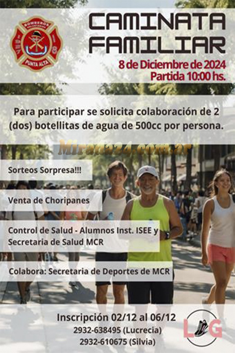 La Caminata Familiar de nuestros Bomberos Voluntarios, se llevará a cabo el domingo 8 de Diciembre.