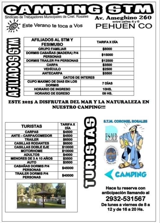 El día 20 se habilita la temporada veraniega para el camping de los trabajadores municipales en Pehuenco. Con renovaciones y mejoras para beneficio de los trabajadores.