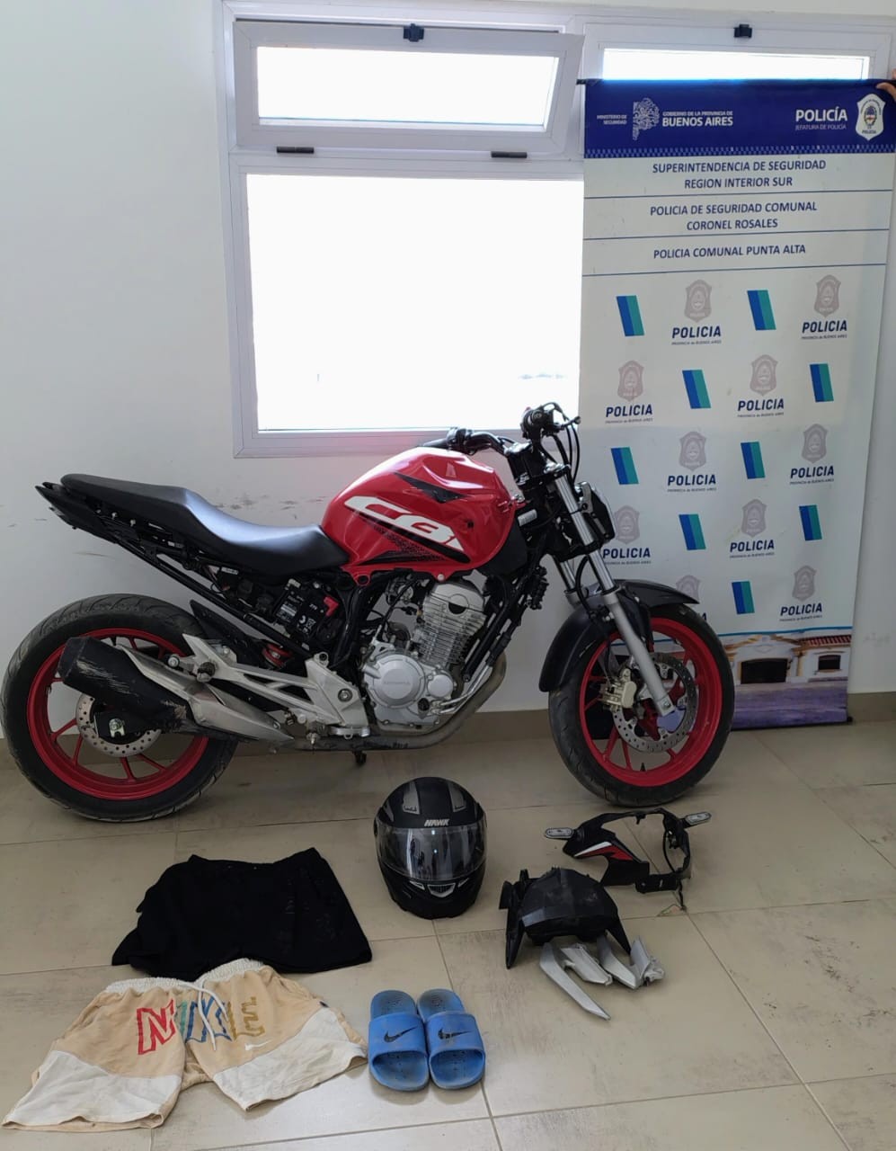 Fecha  04/01/2025, 07:00  hs personal policial de este medio da cumplimiento a  ordenes de Allanamientos dispuesto por J. Gtias del joven Nro. 2 y 3 Dpto B.Bca. por un hecho de Hurto motovehiculo de fecha 31/12/24 de calle Saavedra y Belgrano una moto KTM Duke 200. Se realiza allanamiento en domicilio de calle   Murature al  1600 dónde reside masculino  (18) arroja resultado negativo y en segundo objetivo sito en 12 de Octubre al  1500  donde reside  masculino menor de edad  (17) obteniendo resultados POSITIVO y secuestro de un  motovehiculo marca  Honda CB 250 CC color roja mismo, con numeración de motor y chasis suprimida, secuestro de ojotas celeste, pantalón corto negro y pantalón corto marrón claro con vivo blanco y un  casco  negro, (prendas utilizadas al momento de cometer el hecho moto KTM 200 ). Se efectuo la aprehensión de MASCULINO  (35) (progenitor) por resistirse al allanamiento  y aprehensión de menor masculino  (17) por atentado y resistencia a la autoridad . e Inf. Art. 289 INC 3 C. P.  Y Hurto Motovehiculo a tenor art. 153 CPP. Se establece mediante tarea investigativa que rodado secuestrado HONDA CB 250  habria sido sustraído con fecha 24/11/24 I  en Jurisdicción Cria. B.Bca. 2da. Intervención UFIJ FRPJ nro 2 y la UFIJ nro 15 del DJBB. Se continúan con las investigaciones a los fines de dar con el otro motovehiculo sustraído. Aprehendidos  alojados en comisaría a la espera de recaudos legales.