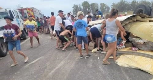 El siniestro se produjo el sábado al mediodía, cerca de la localidad de Urquiza. El vehículo de gran porte quedó volcado sobre la calzada, circunstancia que lugareños aprovecharon para saquear la carga.