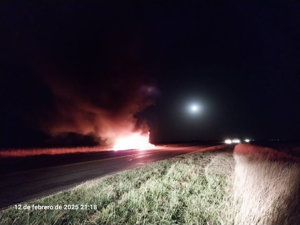 Voraz incendio destruyo un auto Ruta Nacional 3 Km 643
