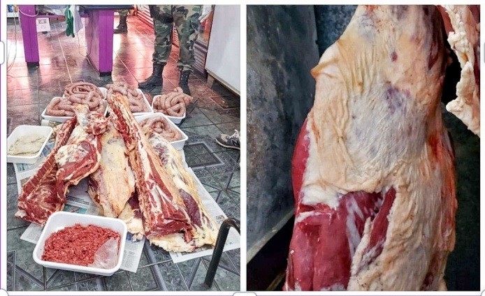 Parte de la carne se encontraba exhibida en una heladera del negocio y el resto dentro de la cámara de frío.