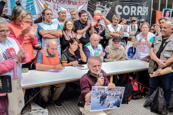 A poco de finalizar la conferencia, se desplegó una hilera de efectivos de la Policía Federal sobre el cordón de la avenida de forma provocativa. "Fuera, yuta, fuera", tronó al unísono en respuesta. Otra de las jubiladas que tomó la palabra fue Raquel Márquez de la Confederación General de Jubilados, quien ponderó "el coraje de todos los jubilados que estamos acá presentes los días miércoles", resaltó y recordó que "a partir de la marcha contra la reforma previsional de 2017 empezó el final del gobierno de Macri". Para finalizar, el secretario general de Sipreba, Agustín Lecchi, afirmó que "los jubilados, así como las diversidades el primero de febrero, son la punta de lanza de la lucha del movimiento popular para derrotar el plan de ajuste de Milei".