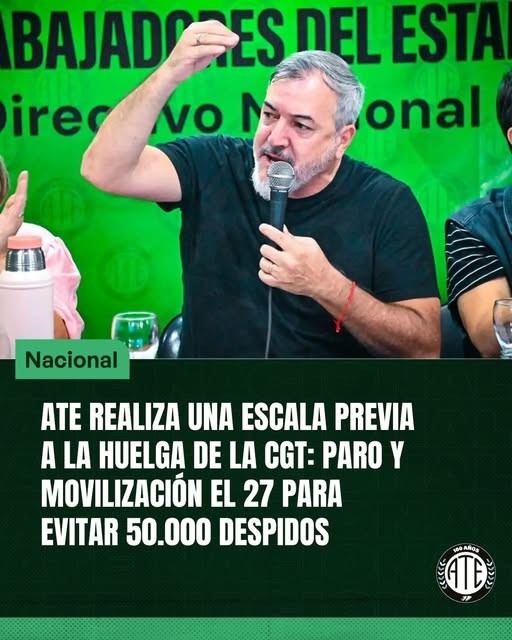 ATE realiza una escala previa a la huelga de la CGT: Paro y movilización el 27 para evitar 50.000 despidos