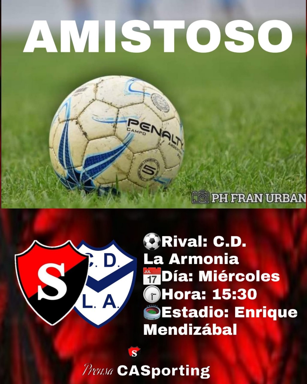 El  DT. Sebastián Polla nos confirmó que el miércoles, 15:30hs habrá una práctica compartida en el Mendizabal frente al Club Deportivo La Armonia Equipo que dirige Rodolfo "Fito" Cuello.