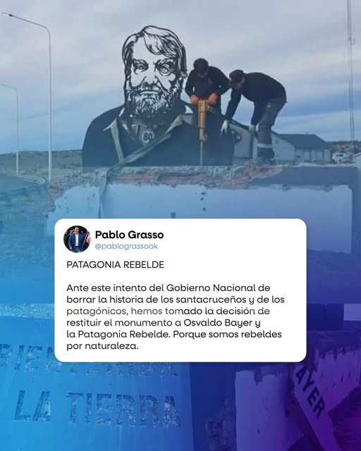 El intendente de Río Gallegos, Pablo Grasso, se refirió a la destrucción del monumento a Osvaldo Bayer, realizada por Vialidad Nacional un día después del 24 de marzo. En declaraciones en Circo Freak, que sale en Gelatina, criticó el accionar de las autoridades nacionales y reafirmó el compromiso de la comunidad patagónica con la memoria y la historia.