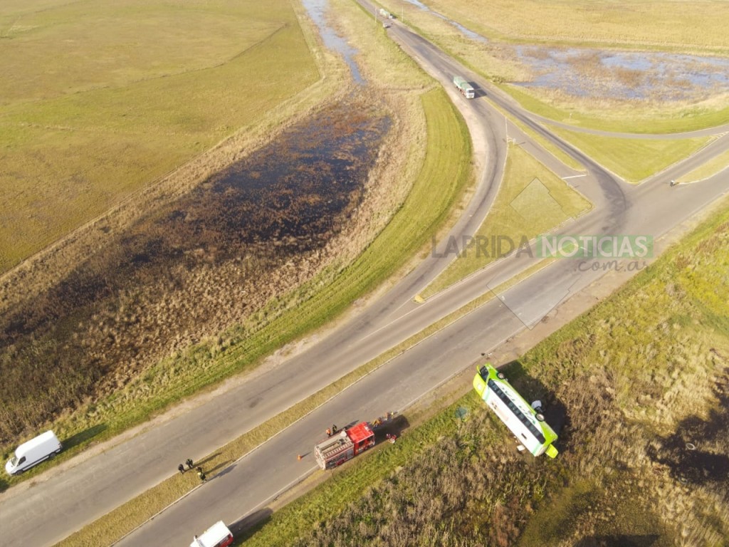 Ocurrió esta mañana pasadas las 6 AM cuando un servicio de larga distancia que viajaba de Caleta Olivia a La Plata, despistó en el cruce de las rutas 51 y 76.