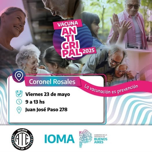 Viernes 23 de mayo  De 9hs a 13hs  Policonsultorios de ATE, Punta Alta (paso 278). La campaña esta dirigida Para afiliados del IOMA, tanto del ámbito municipal como provincial, incluyendo también a jubilados y pensionados y para mayores de 17 años y personas con factores de riesgo persistentes Desde ATE consideramos fundamental proteger la salud de quienes día a día sostienen el funcionamiento del Estado, y por eso acompañamos con compromiso y responsabilidad esta campaña. La vacunación antigripal es una herramienta clave para reducir complicaciones y ausentismo durante la temporada invernal, especialmente entre quienes presentan condiciones de salud más vulnerables. ¡Agradecemos a IOMA por confiar en ATE como espacio para llevar adelante esta iniciativa. Seguimos construyendo un sindicato presente, que piensa en el bienestar de sus trabajadores, y que apuesta a políticas de prevención y cuidado colectivo! Ate