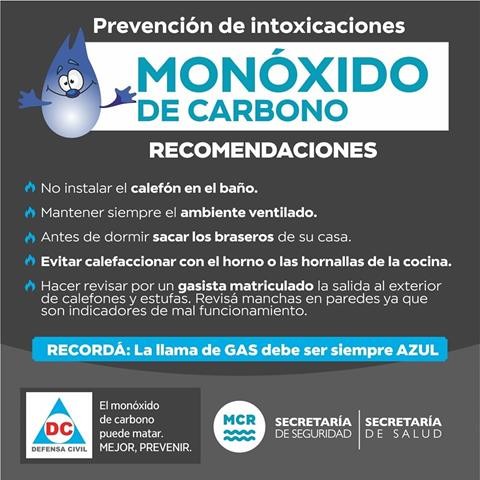 La municipalidad de coronel rosales a través de su dirección de defensa civil difunde un plan de prevención y alerta por perdidas de monóxido de carbono y recomienda revisión de aparatos de calefacción y control de instalaciones.