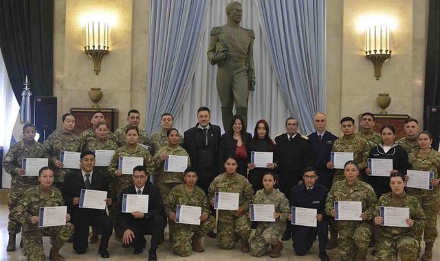 En el Salón “San Martín” del Edificio Libertador, sede del Ministerio de Defensa, se realizó el acto de entrega de certificados de competencias laborales a marineros y soldados voluntarios formados en distintos oficios. Esta validación se logra mediante exámenes en los Centros de Formación Profesional reconocidos por la Secretaría de Trabajo, Empleo y Seguridad Social, organismo que emite los certificados correspondientes.