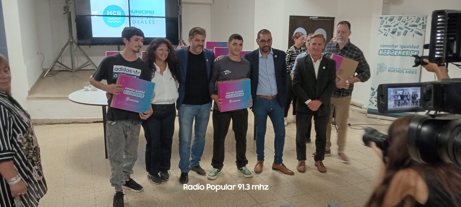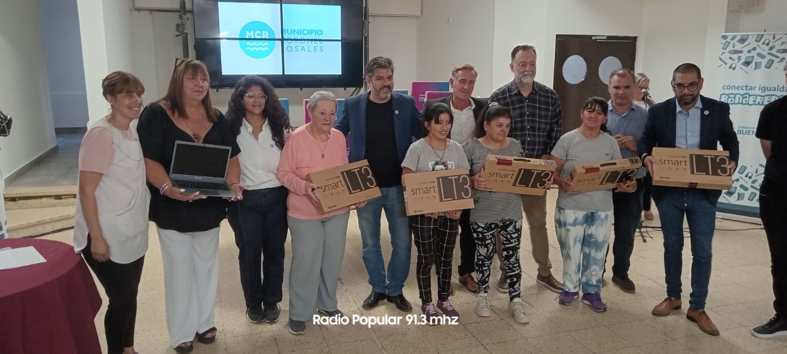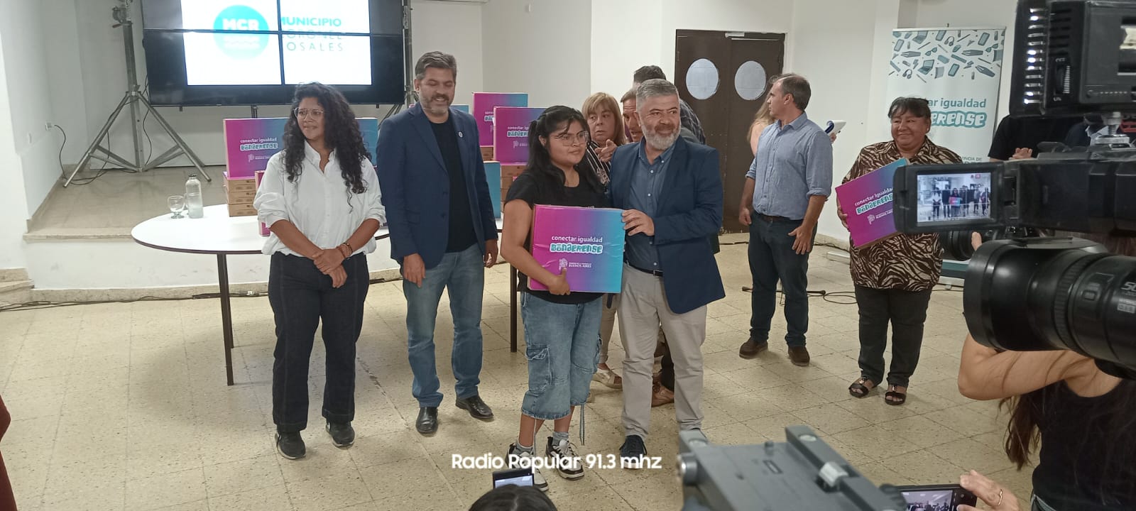 El ministro de Gobierno de la provincia de Buenos Aires, Carlos Bianco, y el intendente de Coronel Rosales, Rodrigo Aristimuño, encabezaron la entrega de 49 netbooks a estudiantes del último año de la Escuela de Educación Secundaria Agraria N° 1 “Pedro José Orozco”, la Escuela de Educación Secundaria N° 7 y el Centro de Formación Integral N° 1 “Dr. René Gerónimo Favaloro”.